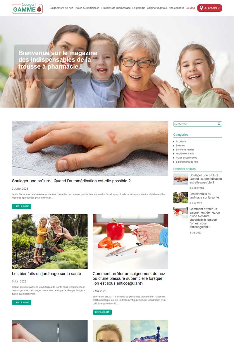 Gamme de médication familiale des Laboratoires Brothier destinée à l’hémostase et la cicatrisation. Ces dispositifs médicaux sont des produits de santé réglementés. Dans le cadre de la refonte du site web existant, une stratégie de référencement naturel récurrente a été mise en place afin d’amener plus de trafic sur le site web.